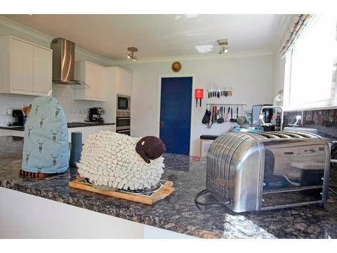 The house is comfortably furnished and consists of 2 double bedrooms, 1 twin bedroom with wash basin, a cot and additional folding bed for a child are available on request, spacious living/dining room with open fire, conservatory, large well-equipped kitchen, bathroom with toilet, bath and walk-in shower, shower-room with power shower, basin and additional toilet. Cooking is by electricity, an induction hob, one fan assisted oven and one conventional one. Oil-fired central heating. Fridge/freezer, washing machine, tumble dryer, dishwasher, microwave, toaster, slow cooker, electric kettle, television, dvd player and library, including books for children, a toy chest for younger ones and a good selection of family games for all ages and jigsaw puzzles. Bed linen and towels are provided. Solid fuel for open fire not supplied, can be easily obtained at petrol stations. Garden and beach chairs. Wi-fi. Ample parking for up to 4 cars.