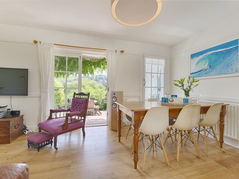 The Porthole is a smart semi detached house 150 yards from the centre of the Devon riverside village of Newton Ferrers. The house sleeps six people in three bedrooms, a bunk room on the ground floor and a double with en suite bathroom and balcony and a twin with balcony on the first floor, plus a shower room. On the ground floor are a kitchen with breakfast area and a sitting room with wood burning stove, dining area and two pairs of French windows to the terrace. Outside is the terrace with furniture and barbecue, as well as the two balconies. Just a short stroll from the shops and riverside pubs, The Porthole is an excellent scenic base for a lovely Devon break.